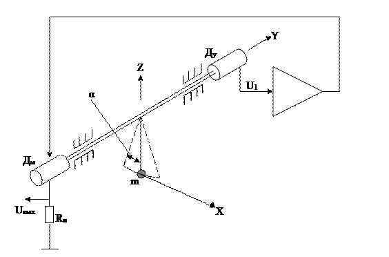 Рис. 11.Электрокинематическая схема маятникового компенсационного акселерометра.