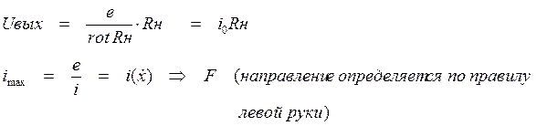 Магнитная сила сформирована полем постоянных магнитов, в зазоре которых помещен проводник. Поле характеризуется индукцией В. Линии индукции замыкаются образуя поле диполя. Если проводник в зазоре движется в направлении х, в нем наводится ЕДС: