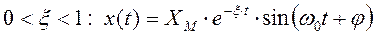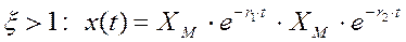 Подставляя найденные значения констант в выражение для x(t), получим свободную составляющую решения дифференциального уравнения (2):