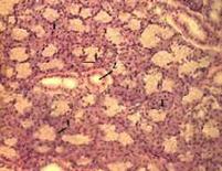 | Рис. 7.7. Железы матки Окраска гематоксилином и эозином | Рис. 7.8. Сальные железы. Кожа с волосом Окраска гематоксилином и эозином | Рис. 7.9. Подчелюстная слюнная железа Окраска гематоксилином и эозином |