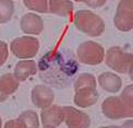 | Морфо-логия | 1) По размеру моноциты – самые крупные среди форменных элементов крови. 2) Ядро – тоже крупное, бобовидное (нередко – вообще неправильной формы) и относительно светлое. 3) Цитоплазма – в виде светлого широкого ободка и может содержать несколько гранул. |