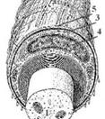 | Плазмолемма леммоцита, смыкаясь над каждым цилиндром, образует дупликатуру – короткую «брыжейку» цилиндра, или мезаксон. | Непосредственно вокруг осевого цилиндра – миелиновая оболочка – многократно закрученный мезаксон (следствие вращения леммоцита вокруг погружённого в него цилиндра). | |||