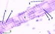 | 1) В мягкой мозговой оболочке (как и в ряде других органов) венулы и даже вены совсем не содержат гладких миоцитов. 2) В этом случае очень легко различить все три основные вида микрососудов. 3) Это, в частности, видно на тотальном препарате: мягкая мозговая оболочка растянута на стекле и мы наблюдаем её сверху. | ||