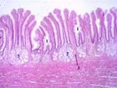 | Самое главное | 1) Слизистая оболочка тонкой кишки образует - ворсинки (пальцевидные выпячивания) (1А) - и крипты (трубчатые углубления) (1Б). 2,а) Эпителий, покрывающий ворсинки и выстилающий крипты, – однослойный цилиндрический каёмчатый (1В). 2,б) Название связано с тем, что на поверхности эпителия выявляется оксифильнаякаёмка, образованная микроворсинками соответств. клеток. |