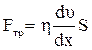 - градиент скорости (характеризует изменение скорости между слоями с расстоянием в направлении перпендикулярном скорости), S - площадь соприкосновения слоев.