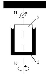Рис. 5. Схема ротационного вискозиметра (1 – внешний цилиндр, 2 – внутренний).