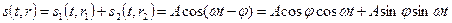 В результате сложения двух колебаний одинаковой частоты, в точке наблюдения Р возникает новое колебание той же частоты: