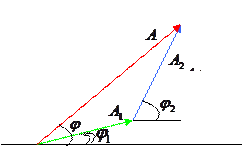 Амплитуда А и фаза φ этого нового колебания связаны с амплитудами и фазами складываемых колебаний: