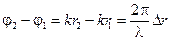 Важно отметить, что r1 и r2 — неизменные, постоянные расстояния от источников до точки наблюдения Р. Одинаковые начальные фазы волн приняты равными нулю.
