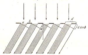 Здесь b — ширина щели, d — расстояние между щелями. Это расстояние называется «постоянная решётки» (период). Речь здесь идёт, конечно, о пространственной периодичности, но не о временной.