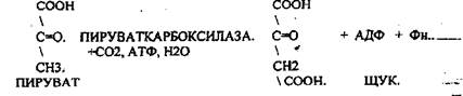 Первая обходная реакция ГЛЮКОНЕОГЕНЕЗА связана с образованием 2-ФОСФОЕНОЛ ПВК и протекает в две стадии: