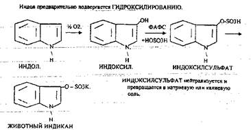 Все эти вещества выводятся из организма с мочой. В норме реакция на индол должна быть Отрицательна. При положительной реакции на индол - нарушена детоксикационная функция печени. Положительная реакция на ИНДИКАН наблюдается при очень активном гниении белков в толстом кишечнике.
