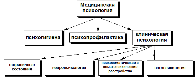В медицинской психологии выделяется ряд направлений или отраслей: