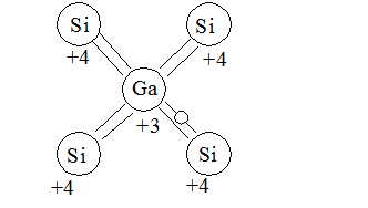Полупроводник p – типа образуется путём добавления акцепторной примеси. Атом гелия имеет три валентных элемента. Они образуют ковалентную связь с тремя атомами кремния, при этом остаётся свободным один энергетический уровень в валентной зоне.