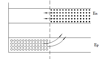 Наличие диффузии электрического поля приводит к искривлению энергетических диаграмм n – p – перехода. Возникает потенциальный барьер