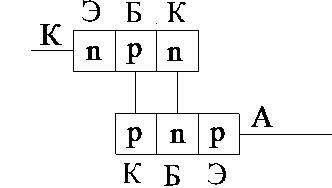 Таким образом (Iуд) это минимальный ток, который необходим для поддержания тиристора в открытом состоянии. Структуру тиристора можно представить в виде двух транзисторов: