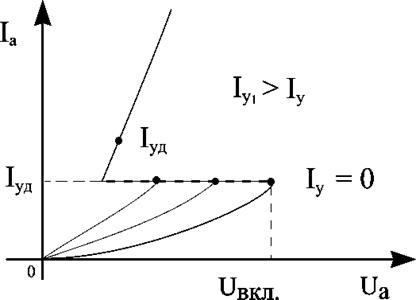 , следовательно из этого выражения: напряжение включенного тиристора зависит от тока управления. С увеличением тока управления, напряжение включения уменьшается.