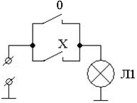 Разомкнутый контакт эквивалентен логическому 0, замкнутый – 1.