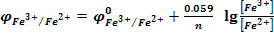 При этом на электроде протекает полуреакция восстановления: Fe3+ + e = Fe2+