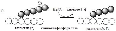 Распад гликогена происходит путем последовательного отщепления глюкозо-1-ф в ответ на повышение потребности организма в глюкозе.