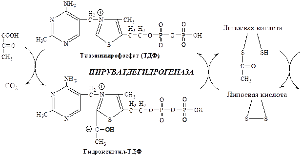 ТДФ забирает у субстрата группу и передает ее на липоевую кислоту: