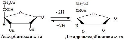 Аскорбиновая кислота может окисляться кислородом воздуха, пероксидом и другими окислителями. ДАК легко восстанавливается цистеином, глутатионом, сероводородом.