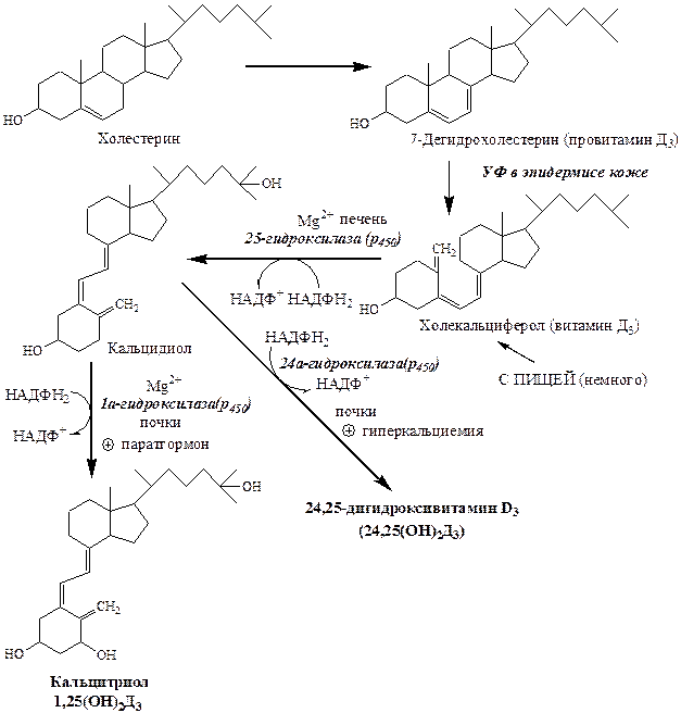Активация. Гормонально-активной формой витамина D является кальцитриол. Кальцитриол образуется в организме человека из холекальциферола и эргокальциферола.