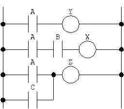 Построение лестничных логических схем. На практике применяется еще 1 метод построения логических схем управления, это т. н. “лестничные схемы”. Наиболее часто такие схемы строятся для таких управляющих устройств, как программируемые контроллеры ( см. ниже).