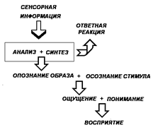 Сенсорные сигналы подвергаются высшему [Б7] анализу и синтезу (опознанию образа), после чего формируется ответная реакция организма.