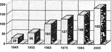 Рис. 19.1. Зростання чисельності членів МВФ (1945-2005 pp.)