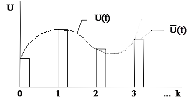 Отличительной особенностью импульсных систем является квантование управляющего воздействия по времени и по уровню. Квантованием управления по уровню можно пренебречь в связи с тем, что оно определяется разрядностью цифро-аналогового преобразователя (см. рис. 1.1), которое может быть реализовано в соответствии с заданными требованиями к точности работы системы. На рис 1.2 изображен пример квантованного по времени сигнала управления.