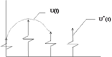 Заменим короткие прямоугольные импульсы на эквивалентные им дельта функции той же площади (рис 1.3). Такая замена возможна в связи с тем, что большинство объектов управления по своим динамическим характеристикам являются низкочастотными фильтрами, реакция таких динамических объектов на прямоугольный импульс и на эквивалентную ему дельта функцию будет практически одинаковой.