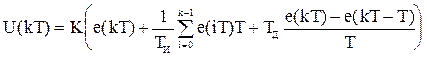 Найдем передаточную функцию цифрового ПИД-регулятора: