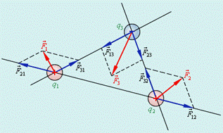 Если заряженное тело взаимодействует одновременно с несколькими заряженными телами, то результирующая сила, действующая на данное тело, равна векторной сумме сил, действующих на это тело со стороны всех других заряженных тел.