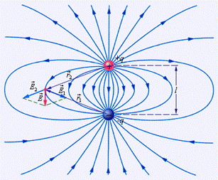 В качестве примера применения принципа суперпозиции на рис. 10.5 изображена картина силовых линий поля электрического диполя – системы из двух одинаковых по модулю зарядов разного знака