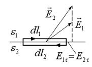 Таким образом, при переходе через границу раздела двух диэлектрических сред тангенциальная