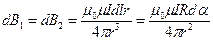 всех малых элементов провода в точке А направлены одинаково – на нас перпендикулярно плоскости чертежа. Модуль