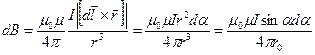 Для расчета воспользуемсязаконом Био-Савара-Лапласа. Модуль вектора магнитной индукции в точке А поля от элемента