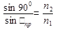 Для випадку граничного кута заломлення, у відповідності з другим законом, можна написати: