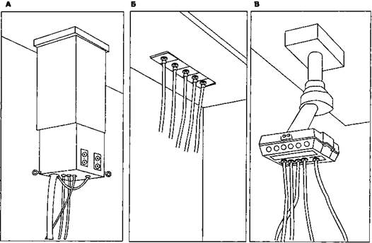 Рис. 2-3.Типовые системы медицинского газоснабжения: А — газовая колонка, Б — потолочные шланги, В — комбинированный кронштейн. Один конец кодированного цветом шланга через быстро соединяемый разъем вставляют в соответствующее выходное отверстие централизованной разводки. Другой конец шланга подсоединяют к наркозному аппарату через невзаимозаменяемый штуцер определенного диаметра. Невзаимозаменяемость соединений для систем подводки основана на том, что диаметры штуцеров и патрубков для различных медицинских газов отличаются (так называемая система безопасности с типовым индексом диаметра патрубков)