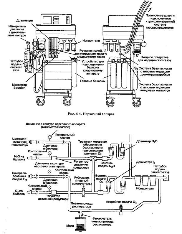 Рис. 4-2. Упрощенная схема устройства наркозного аппарата