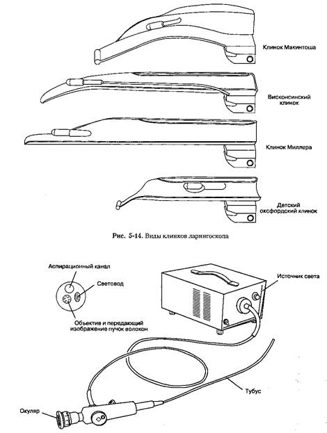 У некоторых больных, например при тугопо-движности в височно-нижнечелюстном суставе или при врожденной патологии верхних дыхательных путей, прямая ларингоскопия ригидным ларингоскопом нежелательна или даже невозможна. В подобных случаях для непрямой визуализации гортани применяют гибкий волоконно-оптический бронхоскоп (рис. 5-15).