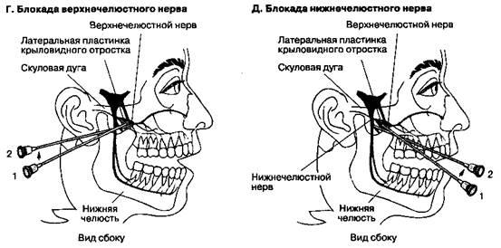 Рис. 18-4. Блокада тройничного нерва и его ветвей (продолжение)