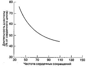 Рис. 19-12.Зависимость между длительностью диастолы и частотой сердечных сокращений