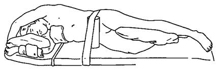 Рис. 24-9. Латеральная торакотомия: правильное положение пациента на операционном столе. (С разрешения. Из: Gothard J. W. W., Branthwaite M. A. Anaesthesia for Thoracic Surgery. Blackwell, 1982.)