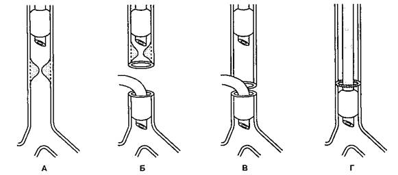 Рис. 24-11.Поддержание проходимости дыхательных путей при операциях на проксимальной части трахеи