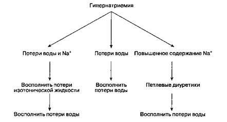 При тяжелой гипернатриемии (> 150 мэкв/л) плановые операции следует отложить до выяснения причины и устранения дефицита воды. Дефицит изотонической жидкости и свободной воды должен быть устранен до операции.