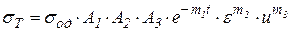 , учитывающих влияние, соответственно, температуры, относительного обжатия и скорости деформации:
