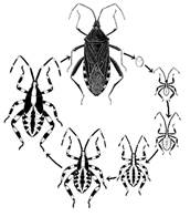 Рис. 20. Цикл развития клопа (1) и двукрылое (2)