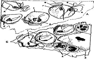 Строение: оболочка, ядро, цитоплазма, ундулирующая мембрана доходит до половины клетки. Размножается делением клетки, цист не образует. Во внешней среде быстро гибнет.